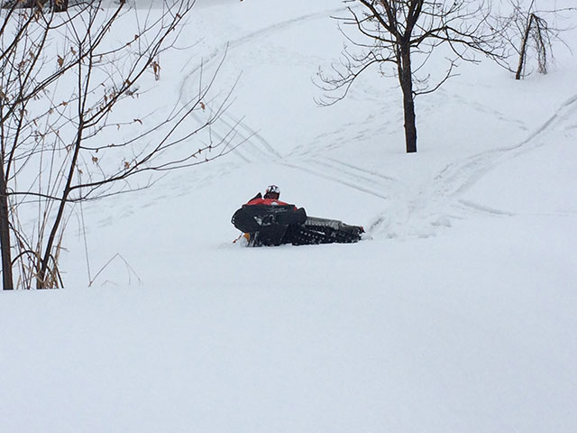 が、横転したスノーモービルは男手プラス女手2名程度ではびくともせず。