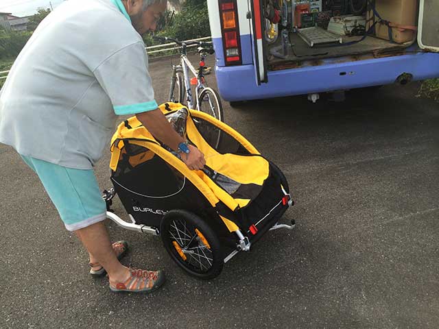 で、さっそくBurley Japanさんから取り寄せて、自転車と一緒にバスにこれを積んできたというわけです。