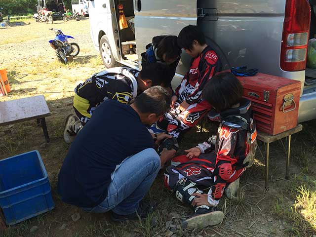 @BOSSも私も走っていたので写真はありませんが、彼ら3兄弟は自転車のダウンヒルをやっていたのでスピード感はあるし、ダウンヒルはスタンディングで乗っていたでしょうから立って乗るのも慣れているでしょうし、こうして延々と基礎練を飽きることなく続ける強さがあるので、MXのレース歴は今年デビューしたばかりと短いけれど、各クラスですでに頭角を表しています。