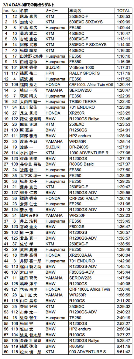 今日の難所の後の、大半のライダーのCP遅着、そしてSS不通過については、おそらくペナルティなしのキャンセル扱いになるのではないか、というのが@BOSSの見解でした。