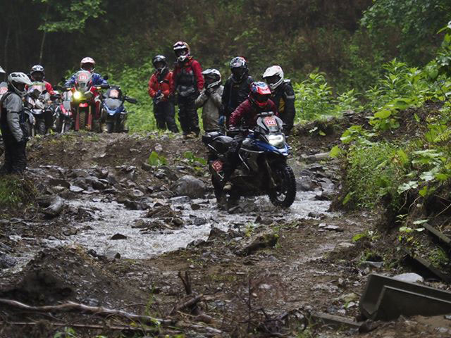 かなり荒れていますので、特に大きなバイクは力を合わせて乗り切ってください。」
