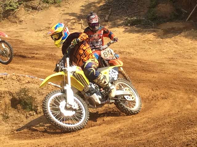 エキスパートクラスのT2さんのマシンを借りて出場のW辺さんは、ロードレースは経験があるものの、なんと今日が初オフロード。