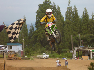 5ヒート目のこのレースにもCRF100で友情出演のウトロンママ(笑)。