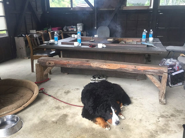 雨なので、ウトロンは屋根の下につながせて頂くことに。