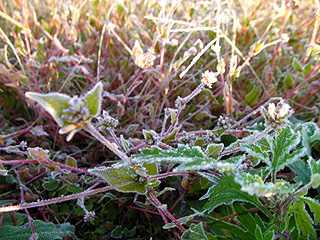 このきれいな霜も、みんな融けて消えてしまうのですが。